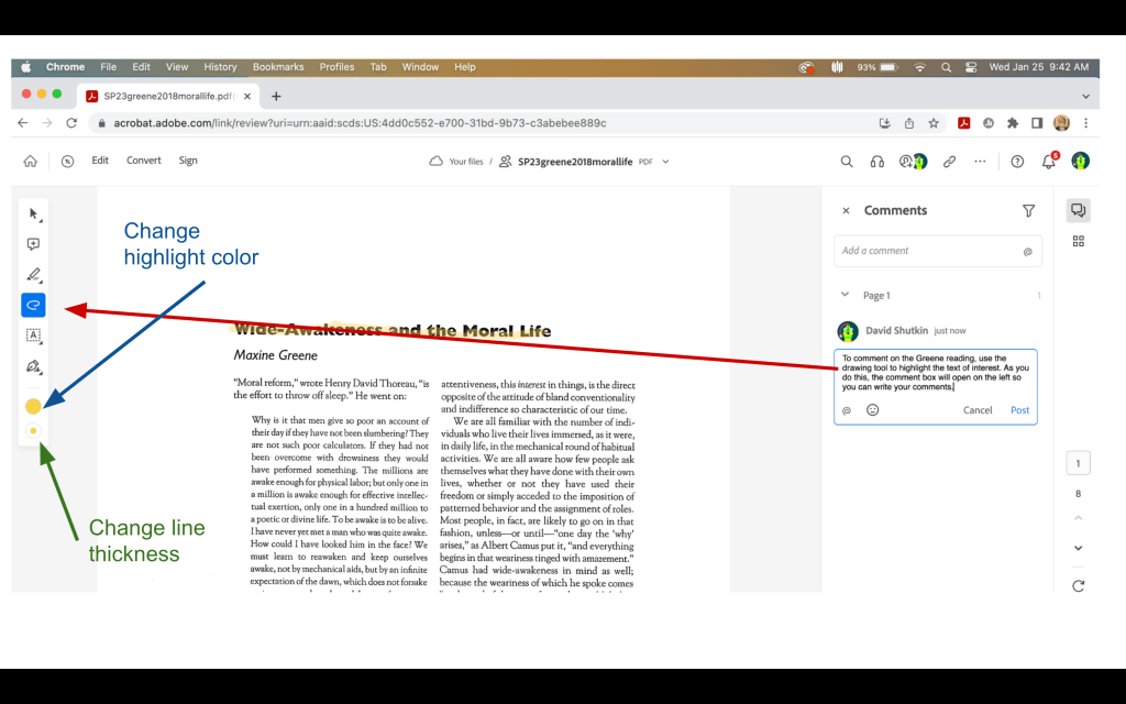 The During-Reading learning activity involves students in a co-reading experience where students read, highlight and comment on the same virtual text. Students are required to reply to each other’s comments as well. In this way, they are invited to discuss and/or question the significance of a reading and contribute to each other’s reading experience.
